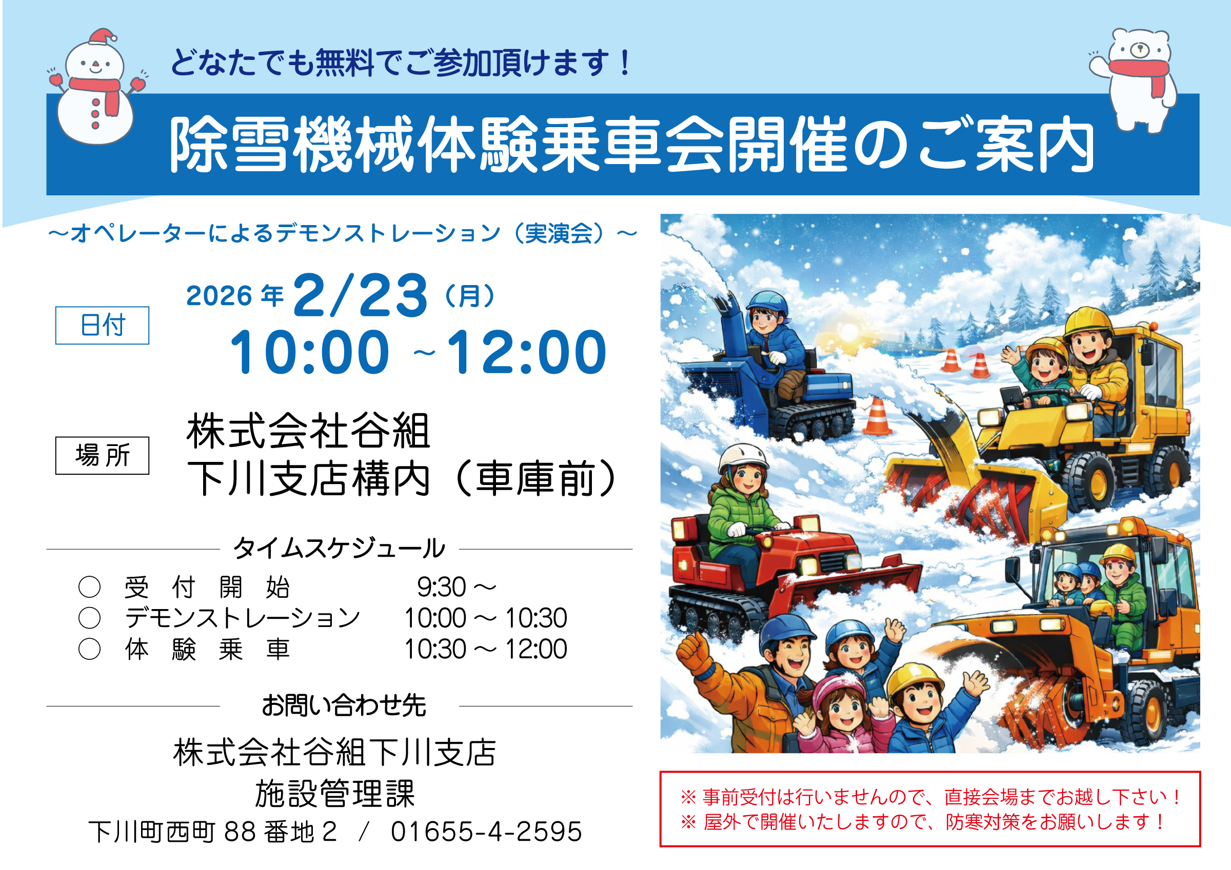 『除雪機械体験試乗会開催のご案内』(2026/02/23開催)