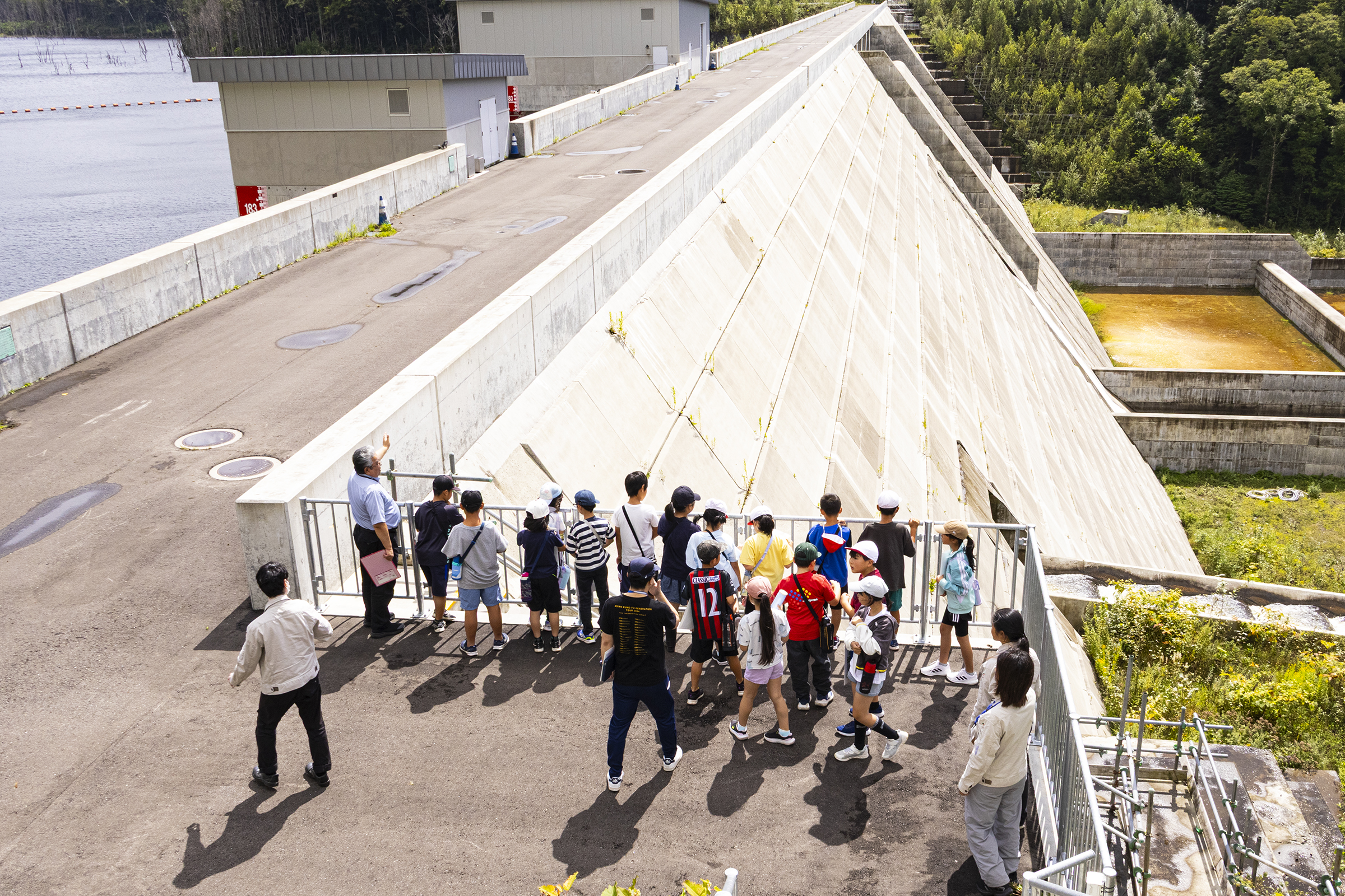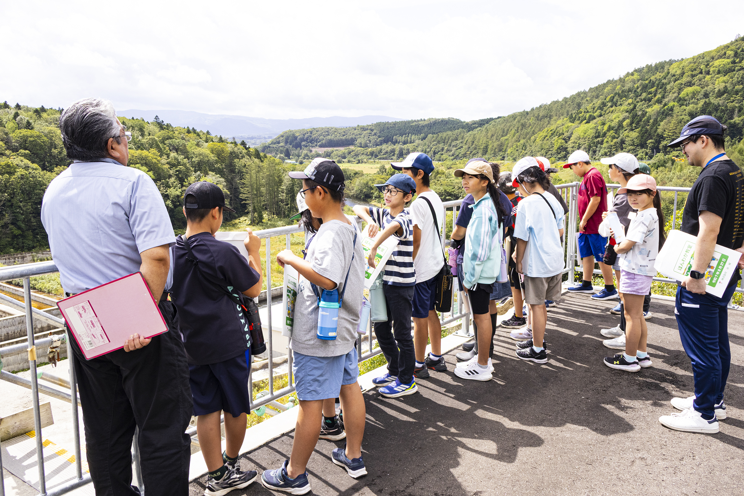 開催当日、天気予報が編め予報だったため急遽開催内容を変更し、下川小学校からバスで移動後サンルダム堤内で、サンルダムの4つの目的を説明した後、サンルダム及びしもかわ珊瑠湖を見学いたしました。