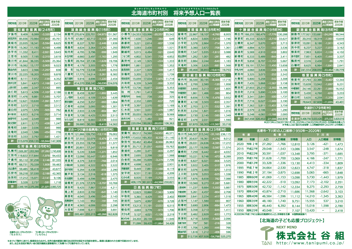 ○ 今回贈呈した「北海道マップ・将来推計人口版(2025年版)」