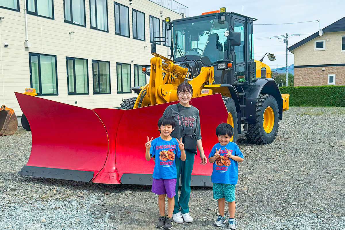 当日は街中にあるスタンプラリー参加店をめぐり、スタンプの数に応じてガラガラ抽選を行い景品が当たるため、数多くのお客様が来店され、来店されたお客様に「ワンコイン市」として500円で購入できる新鮮フルーツトマトの販売及び構内にてタイヤショベル展示及び体験試乗を行いました。
