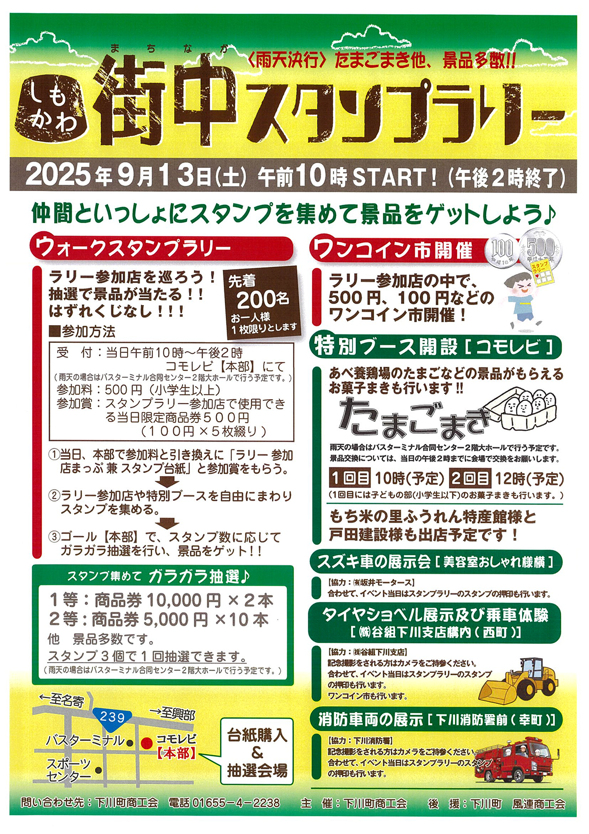 2025年9月13日(土)、下川商工会主催による「しもかわ街中スタンプラリー」が開催され、株式会社谷組もスタンプラリー参加店として参加いたしました。