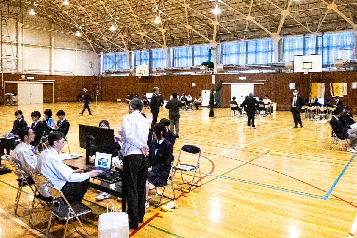 本説明会は、就職を希望している生徒および進路を検討している1・2年生、約40名を対象に実施され、地元企業として当社も参加させていただきました。