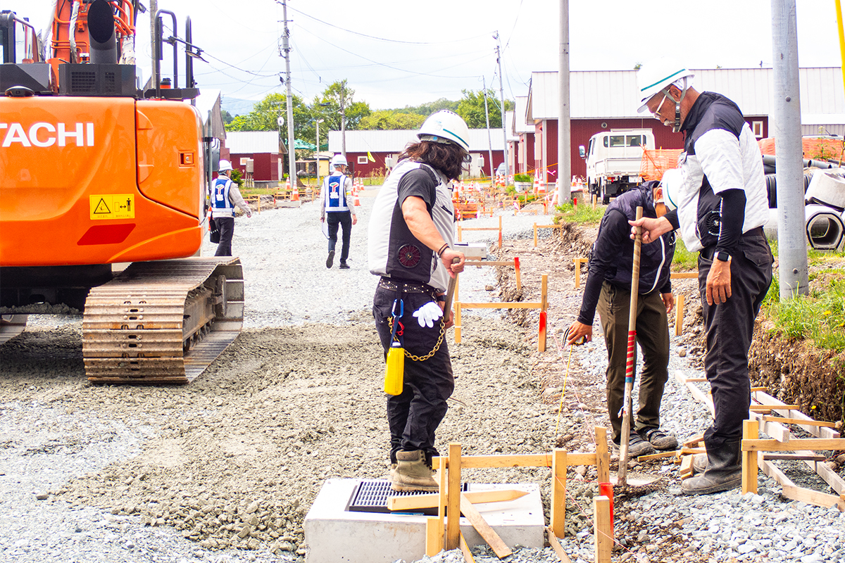 現場によっては、2〜3名体制でチームを組みながら**「ものづくり」ではなく「ことづくり」を実践**しています。CADやICT施工管理、ドローン写真の活用など、技術革新にも積極的に対応しており、次世代の施工管理のあり方も追求しています。