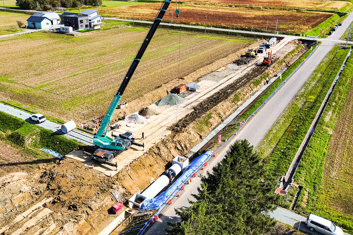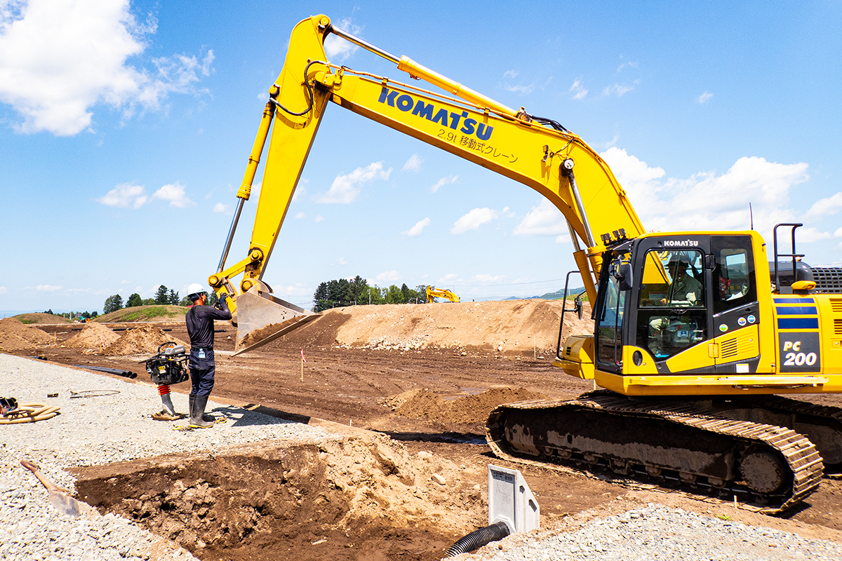 農業は地域の基盤産業の一つです。当社では、圃場整備や農業用水路の改修などを通じて、生産効率の向上と農業の持続可能性を支えています。農家の方々と直接向き合いながら、地域の風土や農法に即した土木工事を実現しています。