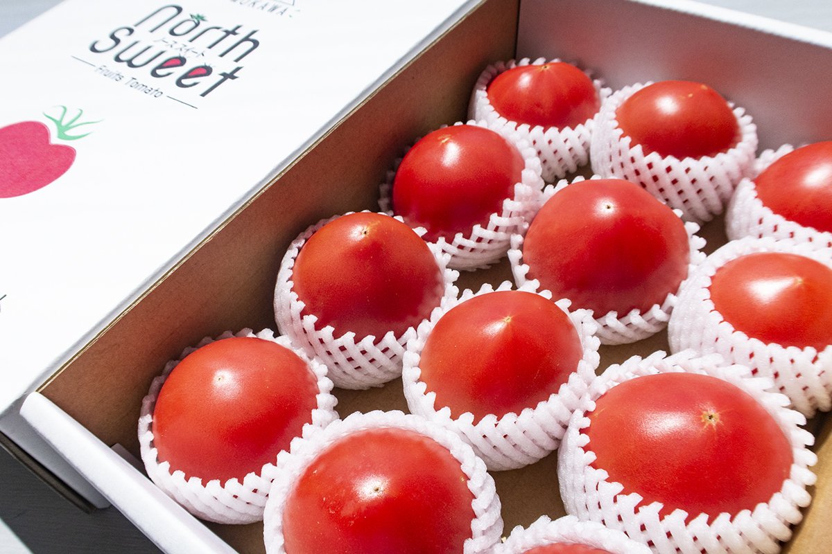こうして生まれた自社ブランドが、オリジナルフルーツとまと「North★Sweet(ノーススイート)」です。糖度は通常のトマトに比べて非常に高く、平均で8〜10度を誇り、口に入れた瞬間、豊かな甘みが広がります。一粒一粒にぎゅっと詰まった旨味と爽やかな酸味が絶妙なバランスで調和し、デザート感覚でも楽しめる逸品です。サラダにはもちろん、お子さまのおやつやギフトとしても大変喜ばれています。