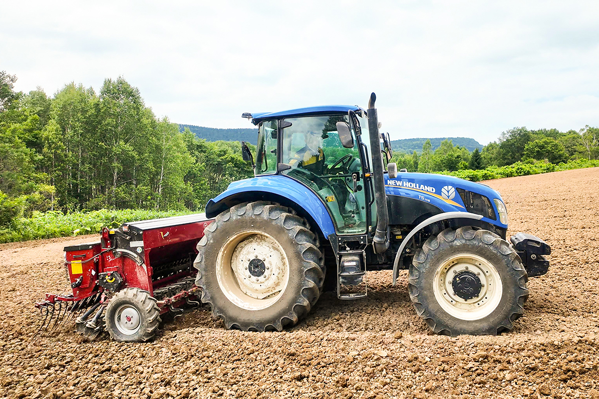株式会社谷組では、地域農業の担い手不足や高齢化といった社会的課題に対し、建設業で培った機械操作技術と現場管理力を生かした「受託農業業務」を展開しています。その一環として、JAおよび下川町の農業法人「畑のくらし」からの依頼を受け、麦・蕎麦の耕起作業および収穫作業を受託しています。