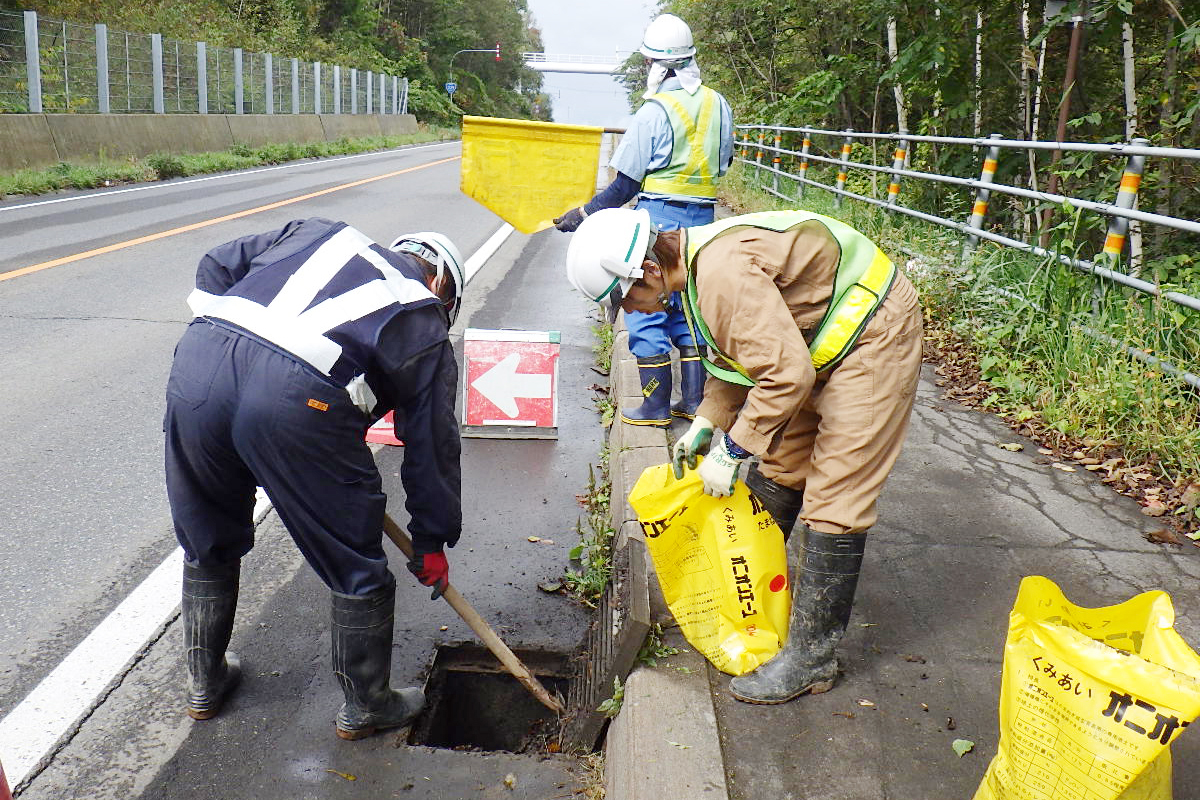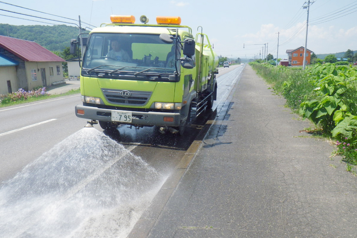 春の雪解けから秋にかけては、一般国道239号線・道道・町道を中心に、日常的な維持管理業務(路面清掃・ゴミ拾い・除草・路面補修)を行っています。